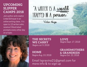Revised-Upcoming Slipper Camps 2018 Published by Linda Novelist, freelance writer and composer in LA. View all posts by Linda